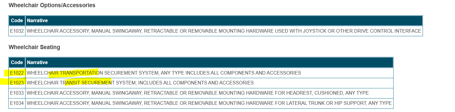 3/28/25 Looks like they are coming up with new codes for wheelchair transportation securement system and transit securement system. I think one would be for the chairs to be attached to the back of a vehicle and other might be to secure the wheelchair inside the vehicle. I am not entirely sure, but these codes are coming. I don't know that they will be covered by Medicare, as previously Medicare was requiring the transit systems to be billed as A9270 - Non-covered service.